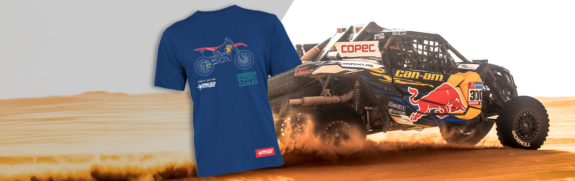 Descubre la colección exclusiva de poleras diseñadas para el destacado piloto de Rally, Francisco 'Chaleco' López! Cada diseño ha sido cuidadosamente desarrollado a mano, utilizando los mejores materiales del mercado, como el suave y duradero algodón.